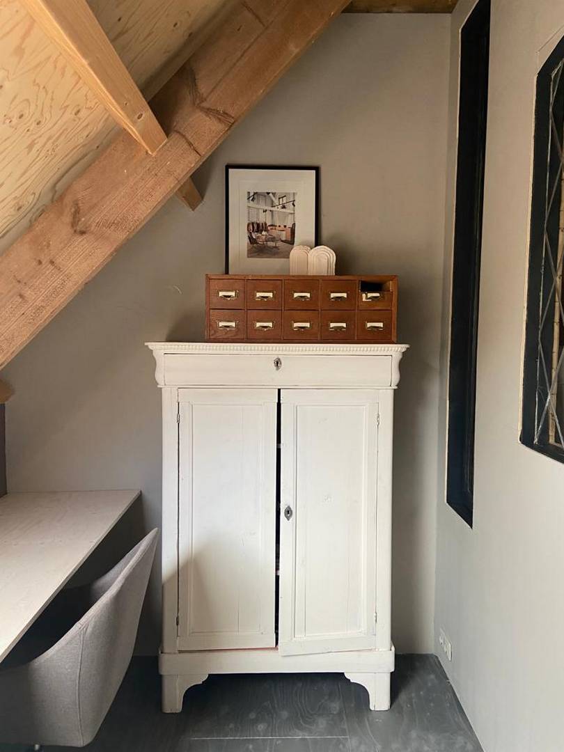 - Verticale ruimte benutten: hoge kasten en rekken trekken het oog omhoog, waardoor het plafond hoger lijkt.