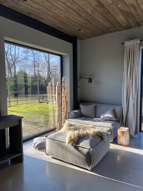 Het mooiste resultaat ontstaat wanneer je oude en nieuwe elementen mixt. Denk aan moderne verlichting tegen een houten wand, een strakke keuken in een oude opkamer of een minimalistische bank in een royale woonruimte met hoge plafonds. Zo geef je de boerderij een eigentijdse uitstraling, zonder de historie kwijt te verliezen