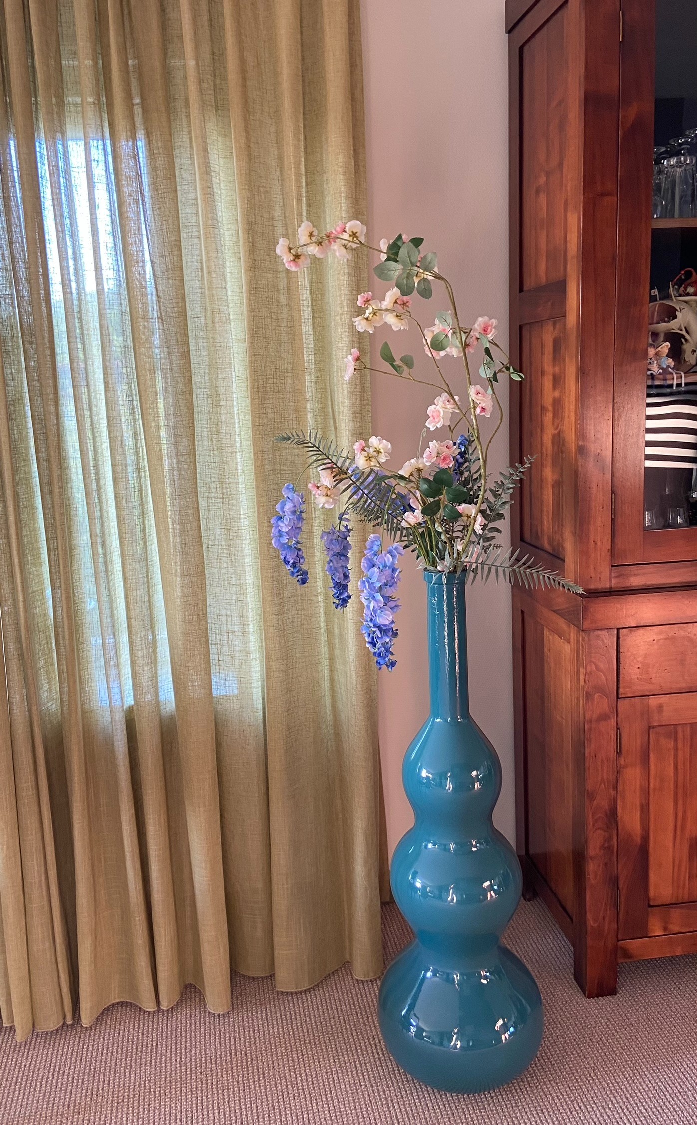 De gordijnen krijgen een warme gele kleur, wat een zonnige, frisse en gezellige uitstraling toevoegt. Zo worden nieuwe accessoires eenvoudig geïntegreerd en ontstaat er een samenhangend interieur waarin de kleuren elkaar versterken.
